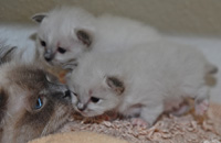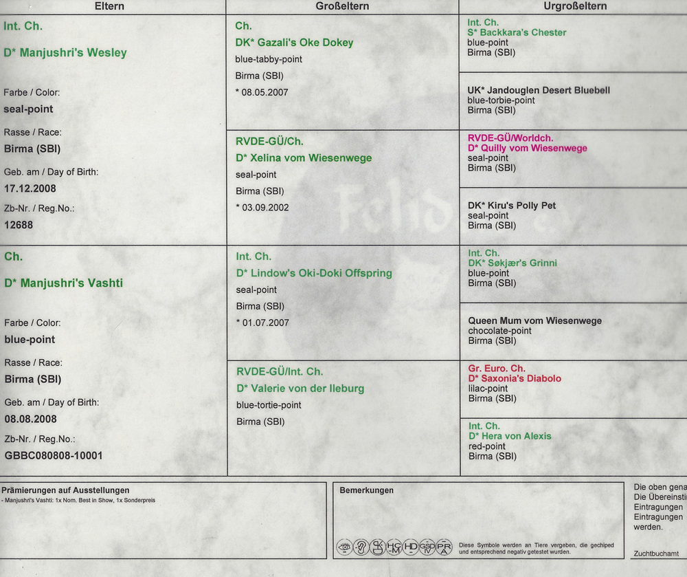 Unsere Manjushri-Kinder wachsen wohlbehütet und liebevoll umsorgt, in unserer Stadtwohnung auf! Sie werden in der 13.-14. Lebenswoche in ein neues Zuhause entlassen. Erst dann sind sie von der Mutter entwöhnt und vorschriftsmäßig entwurmt und geimpft. Die Kleinen dürfen jedoch schon vorher be- und ausgesucht werden. Alle Kitten führen bei Abgabe ihren Stammbaum vom Felidae e.V und Impfpass mit sich. Liebhabertiere werden bereits unter unserer Obhut kastriert und dürfen einige Tage später ausziehen. Alle werden mit einem Microchip versehen, so dass der neue Besitzer das Kitten in einem Heimtierregister registrieren lassen kann.