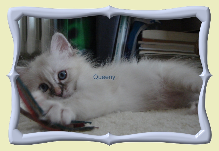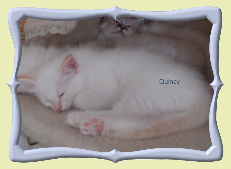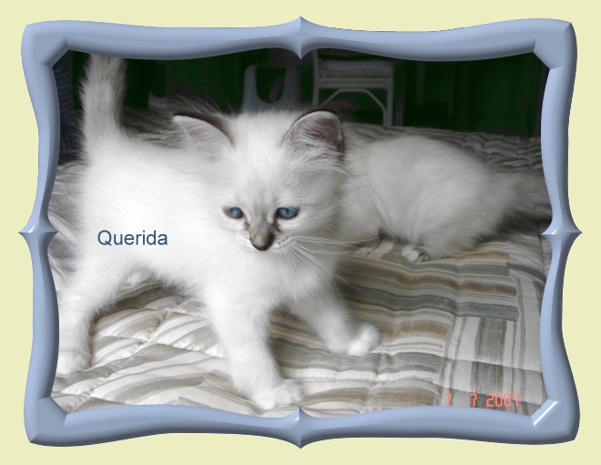 Tini's "Q-Wurf" kam am Himmelfahrt-Morgen 2007 bei uns an: Queeny, Querida und Quincy. Leider mußte Quincy mit Kaiserschnitt geholt werden, aber wir sind froh, dass er und Mama überlebt haben!!!! Penny darf nun als Frührentnerin bei uns bleiben und Quincy hat sich als echter Tausendsasser mit Samthandschuhen entwickelt.