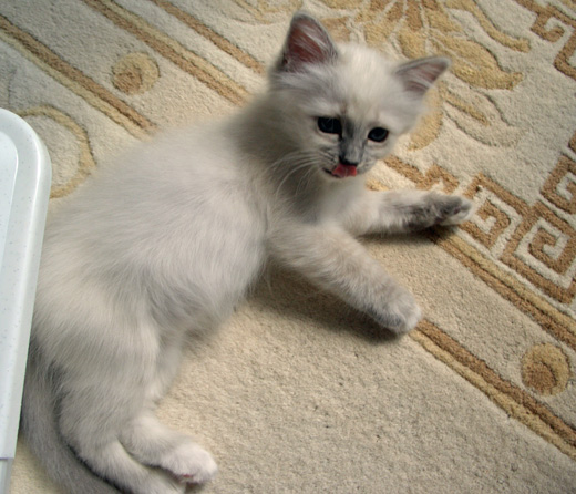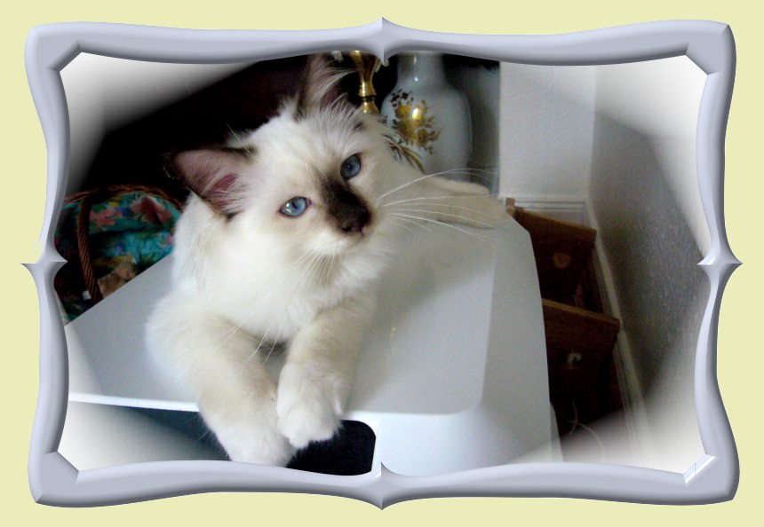 zu uns. Ich danke ihr und J & K Neumann ganz herzlich für diese liebenswürdige Katze. Sie hat sich gut eingelebt und ist unser "ruhender Pol", der ab und zu mal "Flausen im Kopf"hat und ganz süß herumtollt.