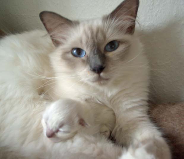 Der letzte Wurf von Xelina -Z-Wurf- verlief schwer aber ohne ärztliche Hilfe. Xelli wollte sich rührend um ihre Tochter Zaphira kümmern, aber die Milch war so spärlich, dass ich die Kleine nach dem 3. Tag zu dem Y-Wurf bei Talitha, ihrer Tante, gesellen mußte, wo sie lieb aufgenommen wurde und alles erhielt, was ein Baby braucht. Ich kümmerte mich dann um Xelinas Wehmut und half ihr über den Verlust hinweg. Sie ist nach wie vor meine liebe süße Xelli....mit allem was man an ihr liebt.