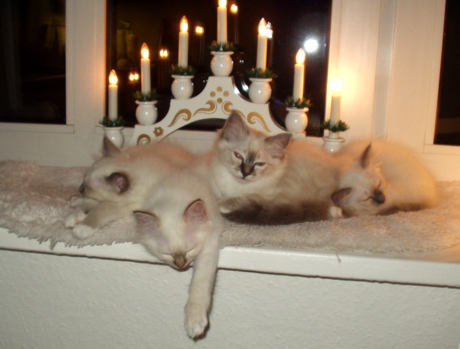 Talitha und Tiggy - seal-point; Teddy - chocolate-point